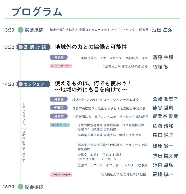 このフォーラムでは、外部の力の活用や外部との協働をテーマに、生活支援体制整備ひいては、地域支援事業における地域づくりを議論します。